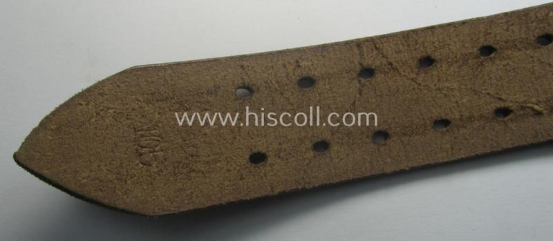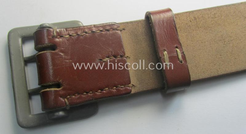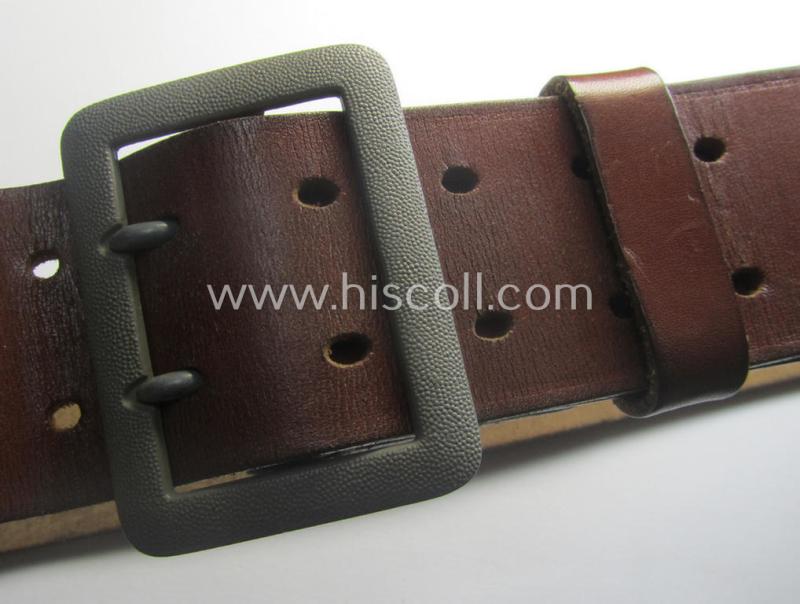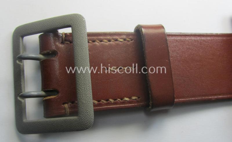 WH (Heeres-, Luftwaffe ie. Waffen-SS) reddish-brown-coloured- and/or genuine leather-based officers'-type-belt (ie. 'Zweidornschnalle für Offiziere') being a hardly used- nor worn example