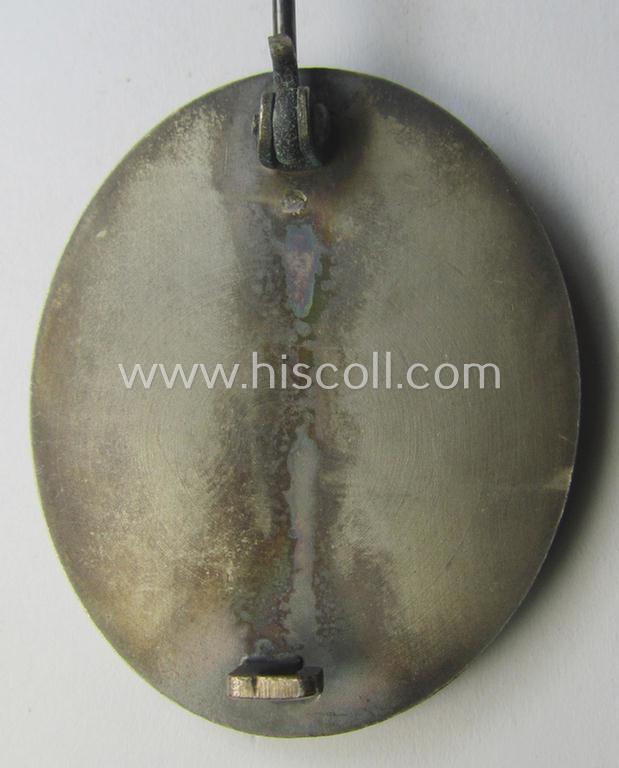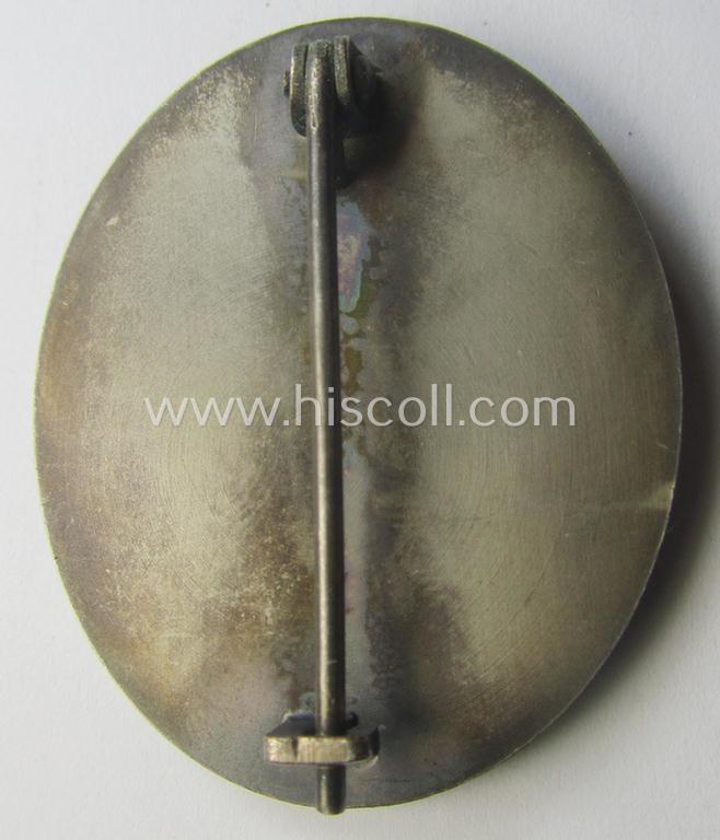 The attractive - truly luxuriously-styled and very pronounced! - silver-class wound-badge (or: 'Verwundeten-Abzeichen in Silber') on offer here is executed in minimally tarnished 'Buntmetall'-based metal and shows obvious (although minimal!) usage and/or wear (as can be seen on the pictures). The badge - which is naturally non-magnetic - comes naturally mounted onto its fully functional (tin-shaped- and totally unaltered) pin (which is of course fully functional) and comes mounted onto its functional and pristine catch. The badge is most certainly never cleaned and truly retains (most of) its silver-toned finish and just shows some obvious tarnish ie. staining (it has, however, never been cleaned nor polished though). It is - as stated above - a non-maker-marked example that can in my opinion be attributed to the Austrian-based maker (ie. 'Hersteller') named the: 'Hauptmünzamt Wien' (ie. 'Hersteller': '30') as was based in the town of Wien (ie. 'Vienna'). Simply a neat, early-war-period- and fully untouched, silver-class WB that is I deem accordingly priced!