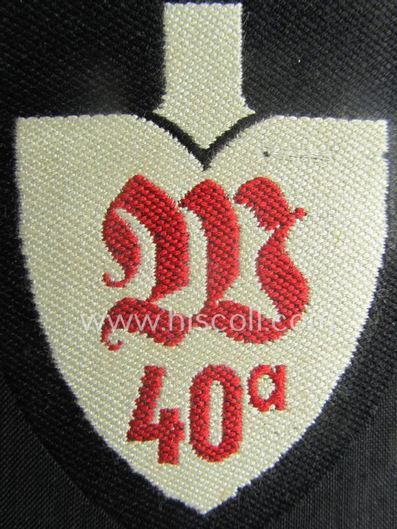 Attractive - never before seen and rarely encountered! - EM- (ie. NCO-) pattern, so-called: RAD (ie. 'Reichsarbeitsdienst') sleeve-badge (or: 'Dienststellenabzeichen') bearing the (to date unidentified!) specialist-designation: 'W 40a'