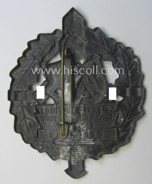 Commemorative, SA- (ie. 'Sturmabteilungen'-) related 'tinnie' depicting an illustration of an SA-Sportabzeichen, horse and typical SA-logo coupled with the text: 'Sportkampftage der SA-Gruppe Westfalen 1937 - Dortmund'