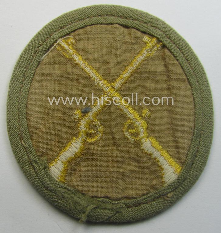 WH (Heeres) 'tropical'-issued, trade- and/or special-career insignia (ie. machine-embroidered 'Laufbahn- o. Tätigkeitsabzeichen') as was intended for an army: 'Waffenmeister' (or: weapon-equipment NCO)