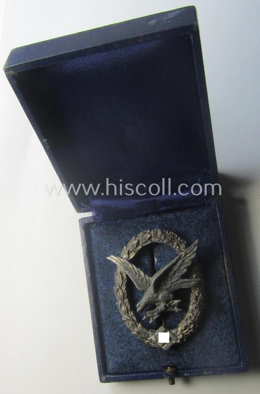 WH (LW) 'Fliegerschützen-Abzeichen mit Blitzbündel' being a maker- (ie. 'Wilh. Deumer'-) marked- and/or: typical zinc- (ie. 'Feinzink'-) based example as was produced by the: 'Wilh. Deumer'-company that comes stored in its period etui