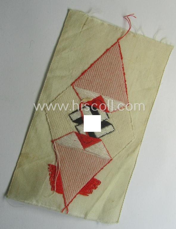 'Standard-issue'-pattern, 'Hitlerjugend'- (ie. 'Bund Deutsche Mädel) ie. HJ/BDM-related so-called: 'Ärmelraute' as executed in so-called 'BeVo'-weave pattern (being a never used- ie. 'virtually mint' example that is void of an 'RzM'-etiket)