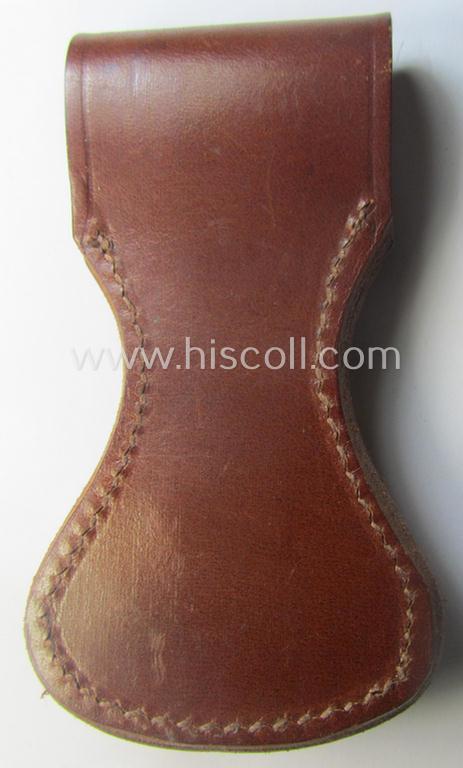 This is an attractive - and (I deem) only minimally used- ie. worn! - example of a 'standard-issued'-pattern, pair of so-called: WH (Heeres) dagger-hangers (ie. 'Gehänge für den Heeres-Offiziersdolch') and that comes in an overall very nice- (and/or of course fully functional- albeit moderately used- and/or worn-) condition. The 'Gehänge' comes in a truly wonderful and totally undamaged condition: it is executed in silver-coloured zinc-based metal (as to be expected) but is totally void of any makers'- ie. patent-pending-designation (as can can be seen on the pictures). Of additional interest is, morever, that this example came with its brown-toned- and genuine leather-based hanger. Also this piece is void of any makers'- ie. patent-pending-designation. Both pieces show some minimal staining, age and/or minimal wear. Simply a neat- and desirable dagger spare-part ie. dagger-accesory: great to complete any 'Heeres-Offiziersdolch'!