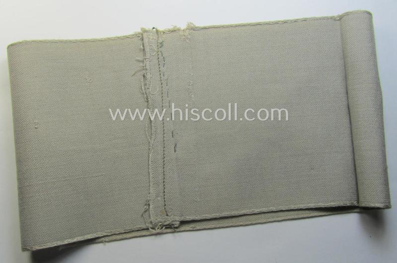 This is a very attractive - and with certainty rarely found! - example of an: OT- (ie.: 'Organisation Todt'-) related, greyish-coloured and 'BeVo'-woven armband (ie. 'Ärmbinde') showing a detailed eagle-device and depicting the text: 'Org.Todt.' (and additionally printed, unique serial-number that reads: '3859') and that comes in an overall very nice- (albeit clearly used- and/or moderately worn-), condition. The armband - which comes in a full-length condition and that is 'off-factory' sewn-together - measures approximately 40 x 10 cms.: it is just a tiny bit stained and is somewhat wrinkled (can be seen on the pictures). This example - that moreover, also shows an interwoven 'BeVo-Wuppertal'-designation -originates from a larger-sized armband-collection that was compiled over the years and that I recently acquired for the web-site. Simply an attractive - and with certainty rarely encountered! - TR-period- ie. 'Org.Todt'-related armband that is I deem priced according to its obvious rarity and/or desirability!