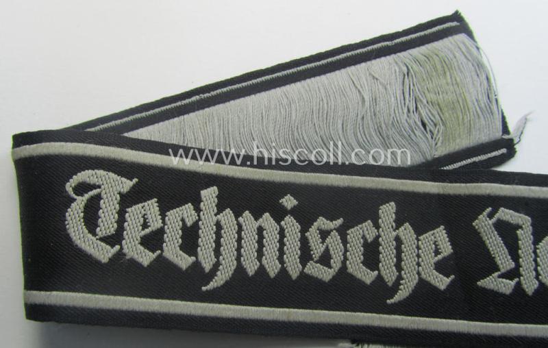Minimally used and/or carefully tunic-removed, TeNo-cuff-title (ie. 'Ärmelstreifen') entitled: 'Technische Nothilfe' (= 'TeNo') being a full length example as was woven in the neat 'BeVo'-weave pattern