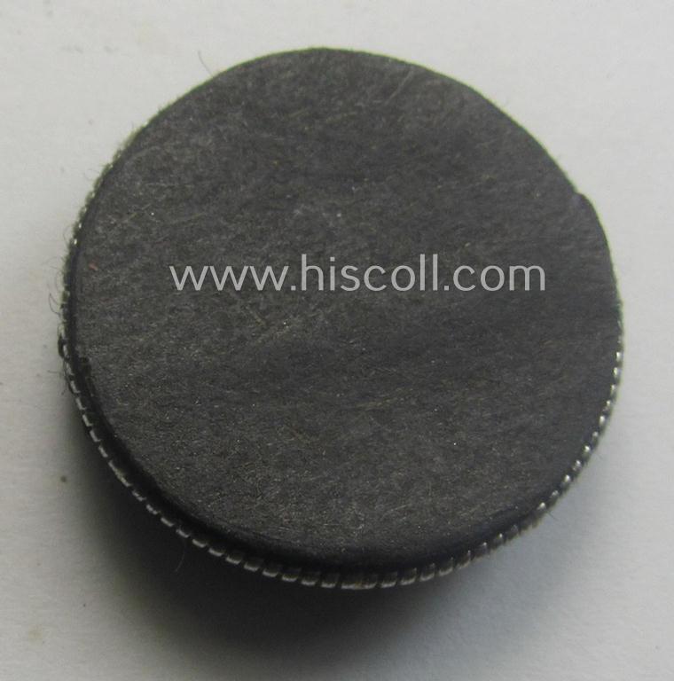 This is an attractive - and actually quite scarcely encountered! - example of a WH (Heeres o. Luftwaffe) officers'-pattern side-cap-cocarde (ie. 'Mützenkokarde für Offiziers-Schiffchen') that comes in an overall very nice- ie. (I deem) simply never used- (ie. still 'virtually mint ie. unissued'-), condition. It should be noted that these neat officers'-pattern side-cap- (ie. 'Schiffchen'-) insignia-pieces are quite difficult to encounter (and come actually hardly ever for sale). The piece on offer here is neatly executed in multi-coloured 'braid' and shows a (paper-based and/or black-coloured) 'backing' in place (as is more often seen). The piece was simply never side-cap-attached and shows some minimal dust and/or tarnish, simply caused by decades of storage only. The quality of the used embroidery is truly stunning: the piece is quite thick and pronounced in execution and can as such easily be graded as a piece of the 'Extra Qualität'. The piece shows a black-coloured- (and or typical 'braid'-based) 'outer-rim' and additional silver-toned piping (as can be seen on the pictures). Simply a great occasion to acquire a neat - and hard to find! - replacement-item that is ideally fitted to restore any quality officers'-type WH-officers-type side-cap (ie. 'Schiffchen für Offiziere')!