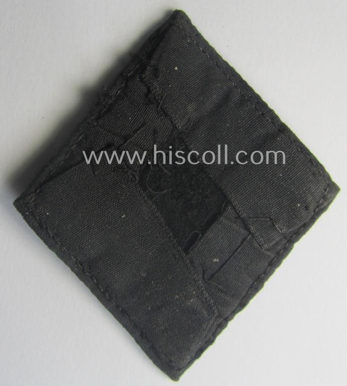 This is an attractive - and I deem just minimally worn- and/or carefully tunic-removed! - example of a (slightly 'padded'): N.S.K.K. (or: 'National Socialistisches Kraftfahr Korps') so-called: 'Kraftfahrraute des 1. Model' (or: 'drivers'-diamond' of the first pattern) being an attractive example that comes in an overall very nice- (albeit I deem minimally worn ie. used-), condition. The badge is neatly executed in machine-woven-, silver-coloured braid (being of the so-called: 'flat-wire'-BeVo-weave-pattern) on a black-coloured and/or silk-like, linnen-based background. The badge is nicely padded (as usual) but is void of an 'RzM'-etiket (as can be seen on the pictures). Simply an attractive - and naturally 100% period! - N.S.K.K. 'trade- ie. special-career'-badge that was worn and/or used by the qualified drivers serving within the various N.S.K.K.-formations. Simply an attractive and very detailed arm-badge that is I deem accordingly priced!