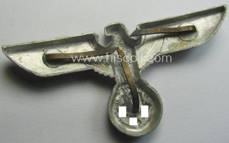 Bright-silver-coloured- and/or: aluminium-based (political-style) visor- (ie. 'Schirmmützen'-) cap-eagle being a detailed example that is neatly: 'RzM' and/or: 'M1/120' marked