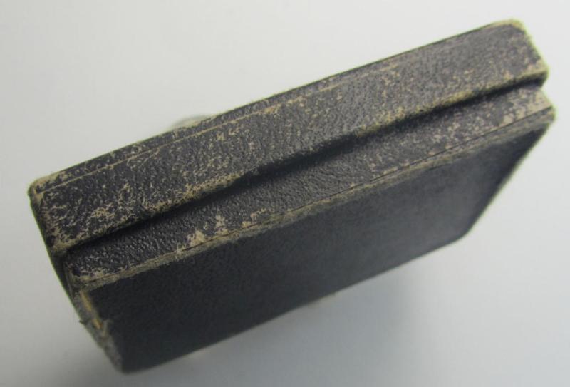 This is an attractive - quite desirable and actually scarcely encountered! - darker-blue-toned- (and typical 'generic'-styled) so-called: 'LDO'-etui ie. two-pieced box being a nicely preserved example that comes in an overall wonderful- (albeit moderately used-), condtion. The etui - that measures 6,2 x 4,2 x 1,8 cms. - shows a fully preserved (light-yellow-coloured- and/or velvet-based) 'inlay'. It shows the (black-toned) 'LDO'-designation stamped into back of its lid but is void of a (silver) 'LDO'-logo imprinted on its top: moreover, does show some usage-marks (as can be noticed on the pictures). These 'generic'-styled LDO-type etuis were intended to store a wide-range of TR-era awards (such as for example the: 'Verwundeten-Abzeichen in Schwarz' or: 'Westwall'-medal to mention a few). Still a neat example of a 'generic'-styled 'LDO'-etui that is I deem accordingly priced!
