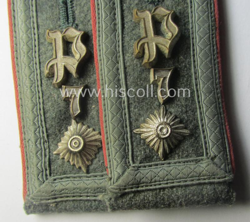 Pair of WH (Heeres) 'M40 o. M41'-pattern, 'cyphered' NCO-type shoulderstraps as piped in the bright-pink-coloured branchcolour as was intended for a: 'Feldwebel des Panzerabwehr-Abtlgs. 7' (ie. 'Divisionseinheit der 7. Inf.-Div.')