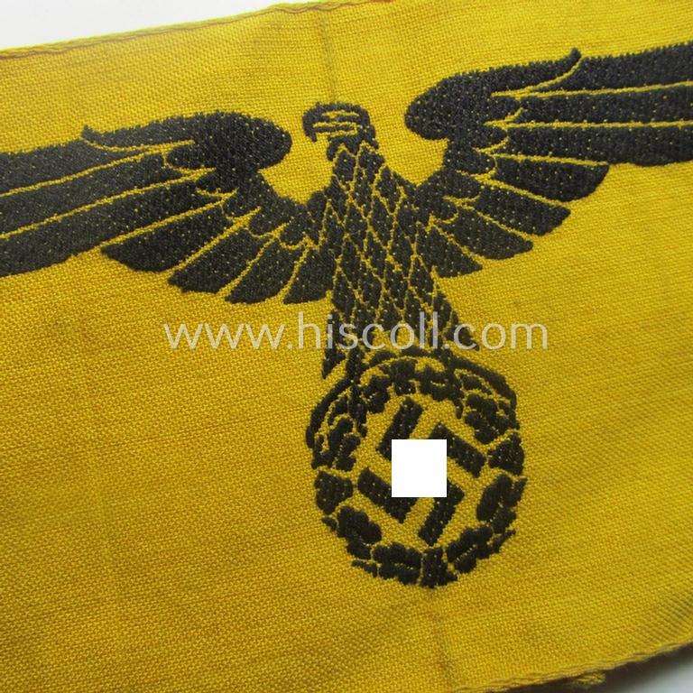 Linnen-based- and/or 'machine-woven', golden-yellow-coloured armband (ie. 'Armbinde') showing a woven eagle-device as specifically intended for (civilian) staff-members (ie. 'Zivilangestellten') of the armed forces ie. 'Deutsche Wehrmacht'