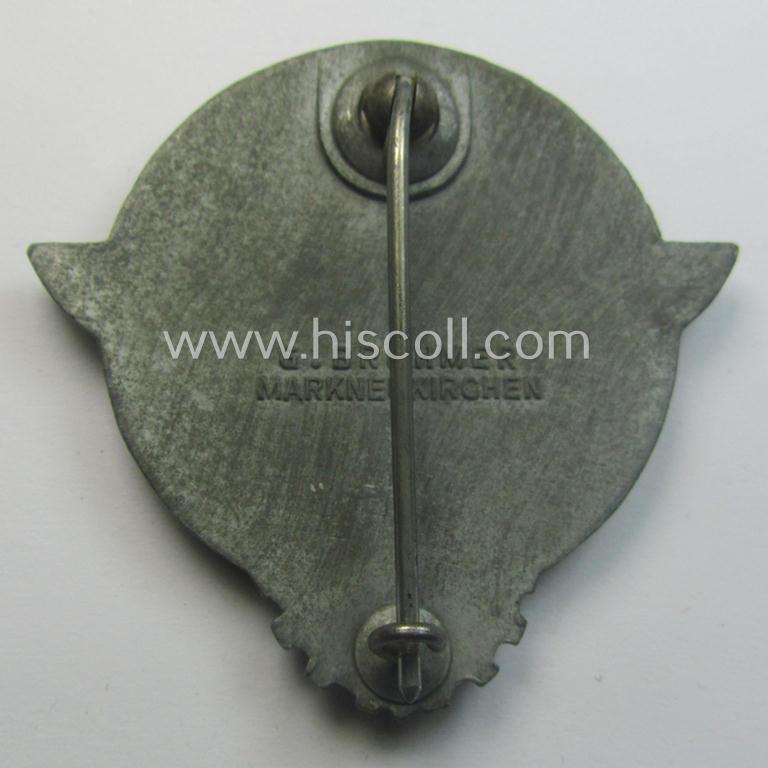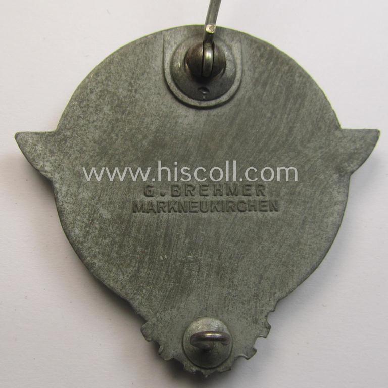 Superb - and truly scarcely encountered! - 'Feinzink'-based HJ (ie. 'Hitlerjugend') so-called: 'Reichsberufswettkampf-Siegerabzeichen' of the 2nd model, 'Gausieger 1944', being a clearly maker- (ie.: 'Gustav Brehmer'-) marked example